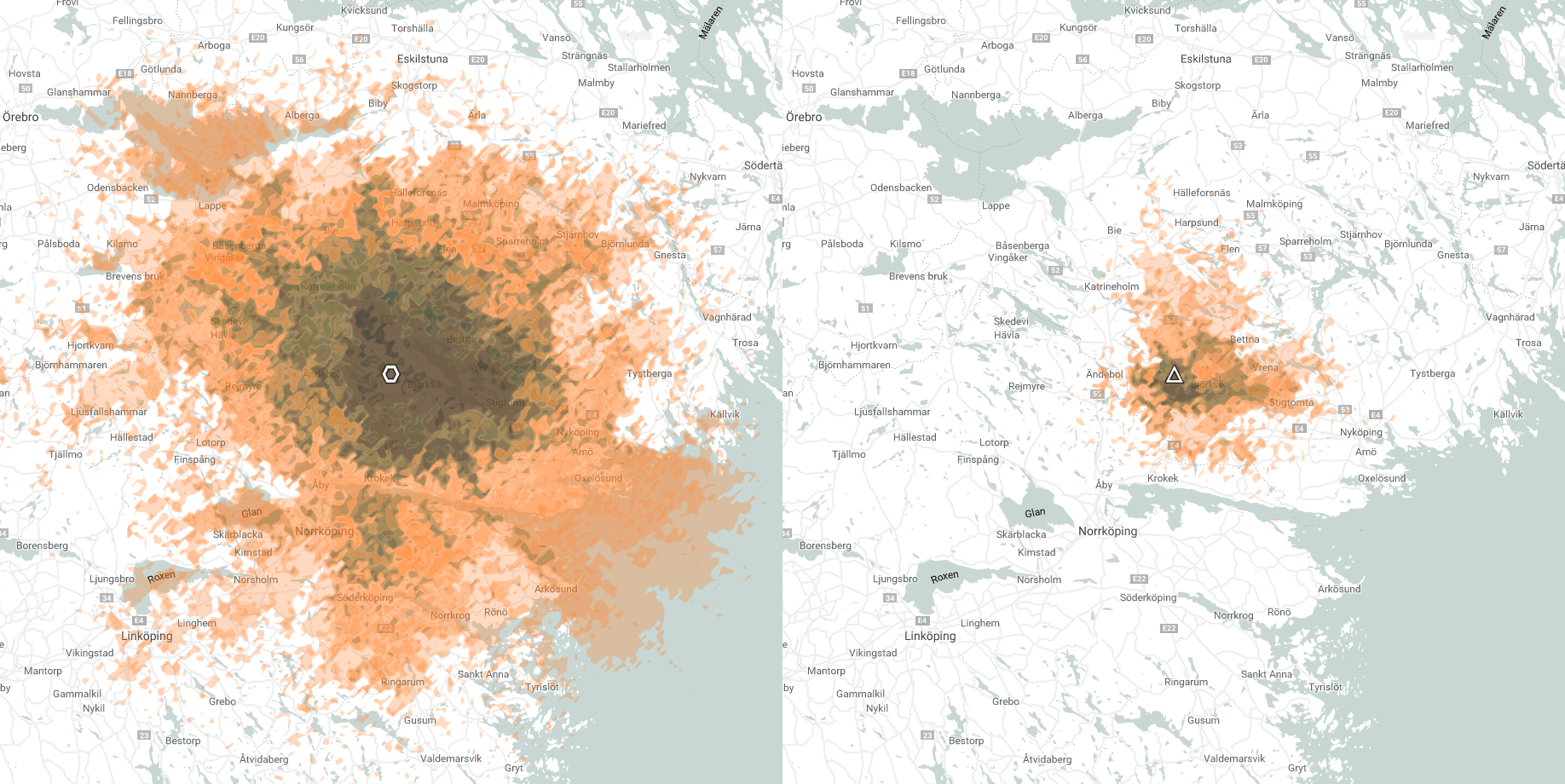 It really does come down to offer the best coverage. Clearly, the below maps are not a good enough indication of 4G LTE coverage in your area. But it will give you an indication of the difference RI:s solution make.Capacity